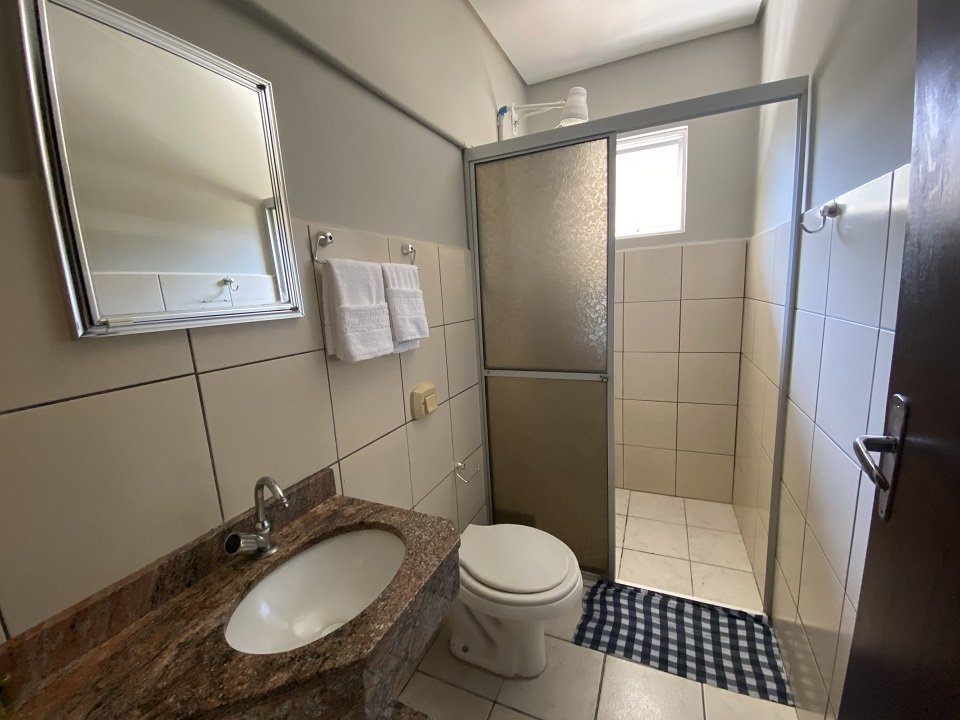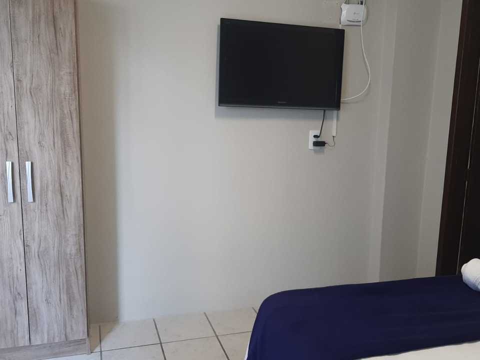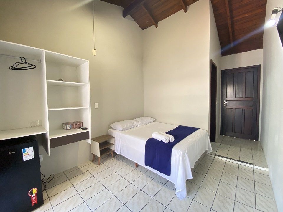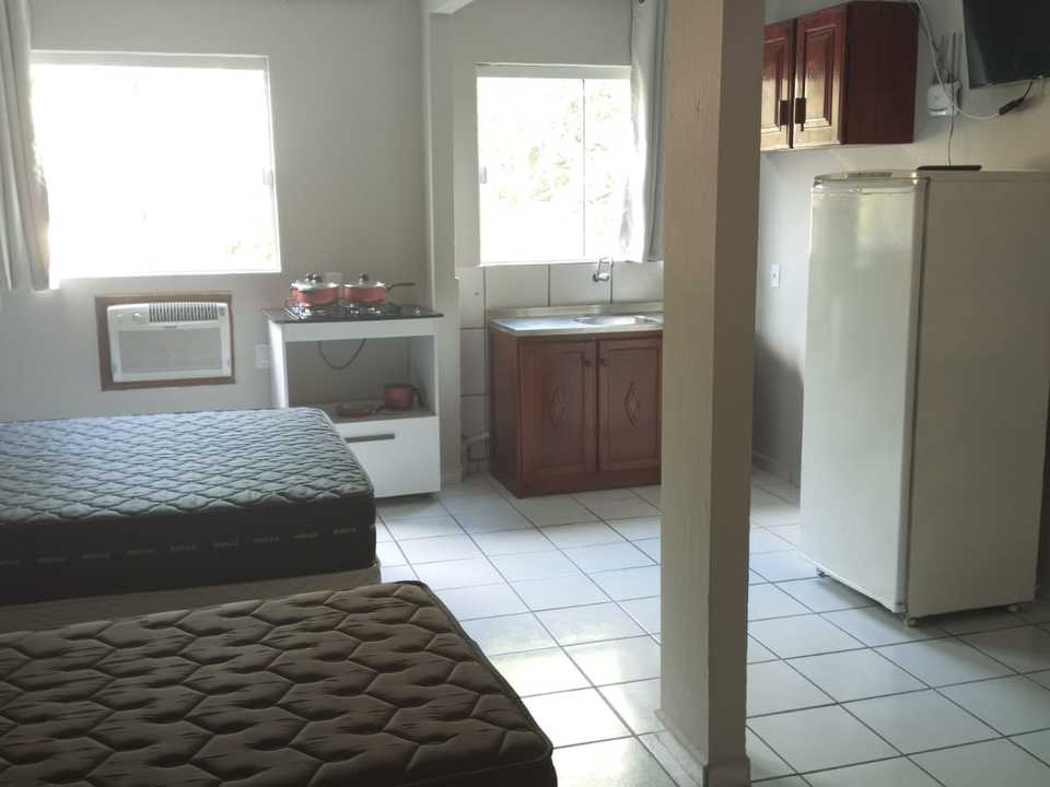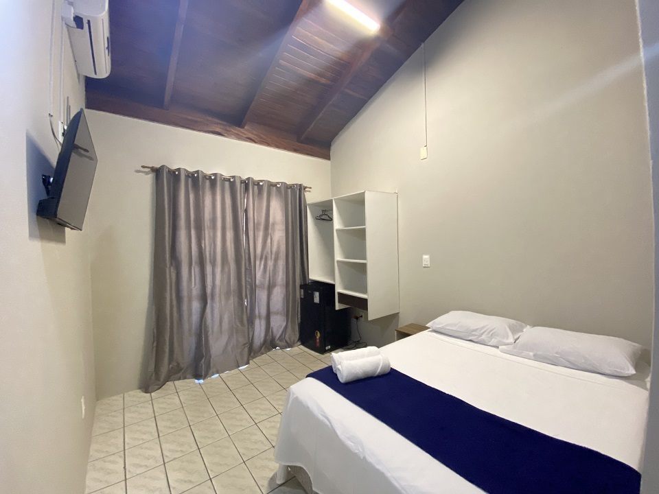 Essa acomodação comporta no máximo 05 pessoas com um quarto tendo uma cama de casal e uma box de solteiro com auxiliar e uma beliche. Sacada ampla com vista para a avenida. Cozinha completa com acessórios para churrasqueira .