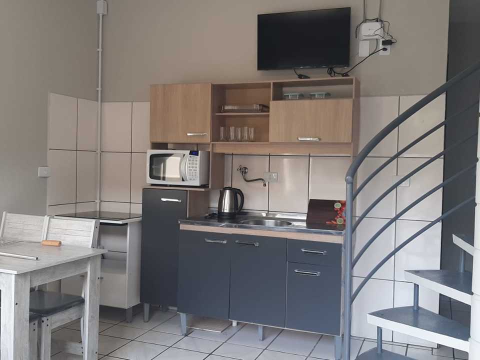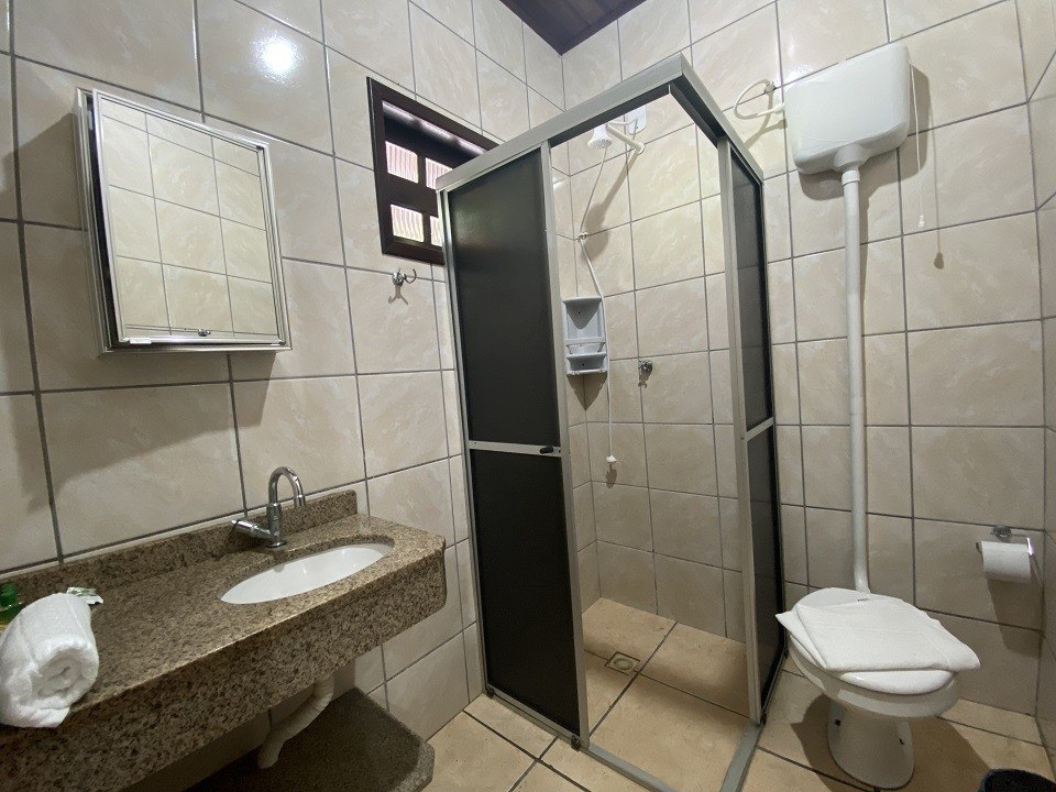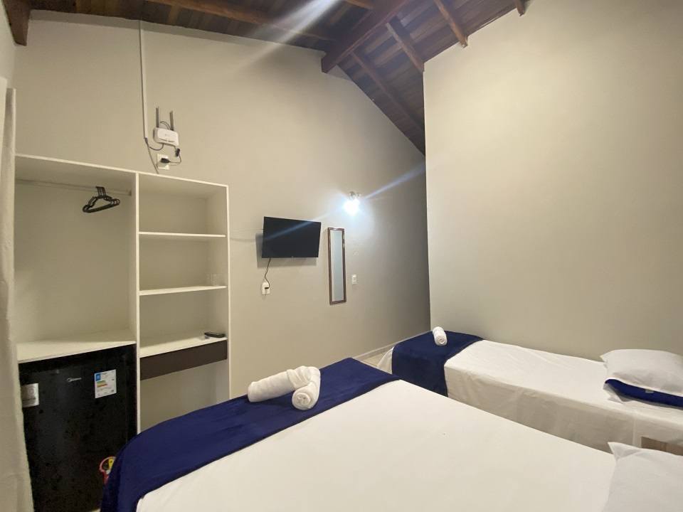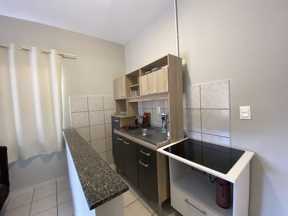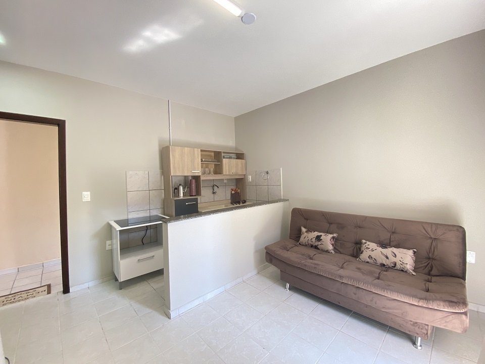 Essa acomodação comporta no máximo 05 pessoas com um quarto tendo uma cama de casal e uma box de solteiro com auxiliar e uma beliche. Sacada ampla com vista para a avenida. Cozinha completa com acessórios para churrasqueira .